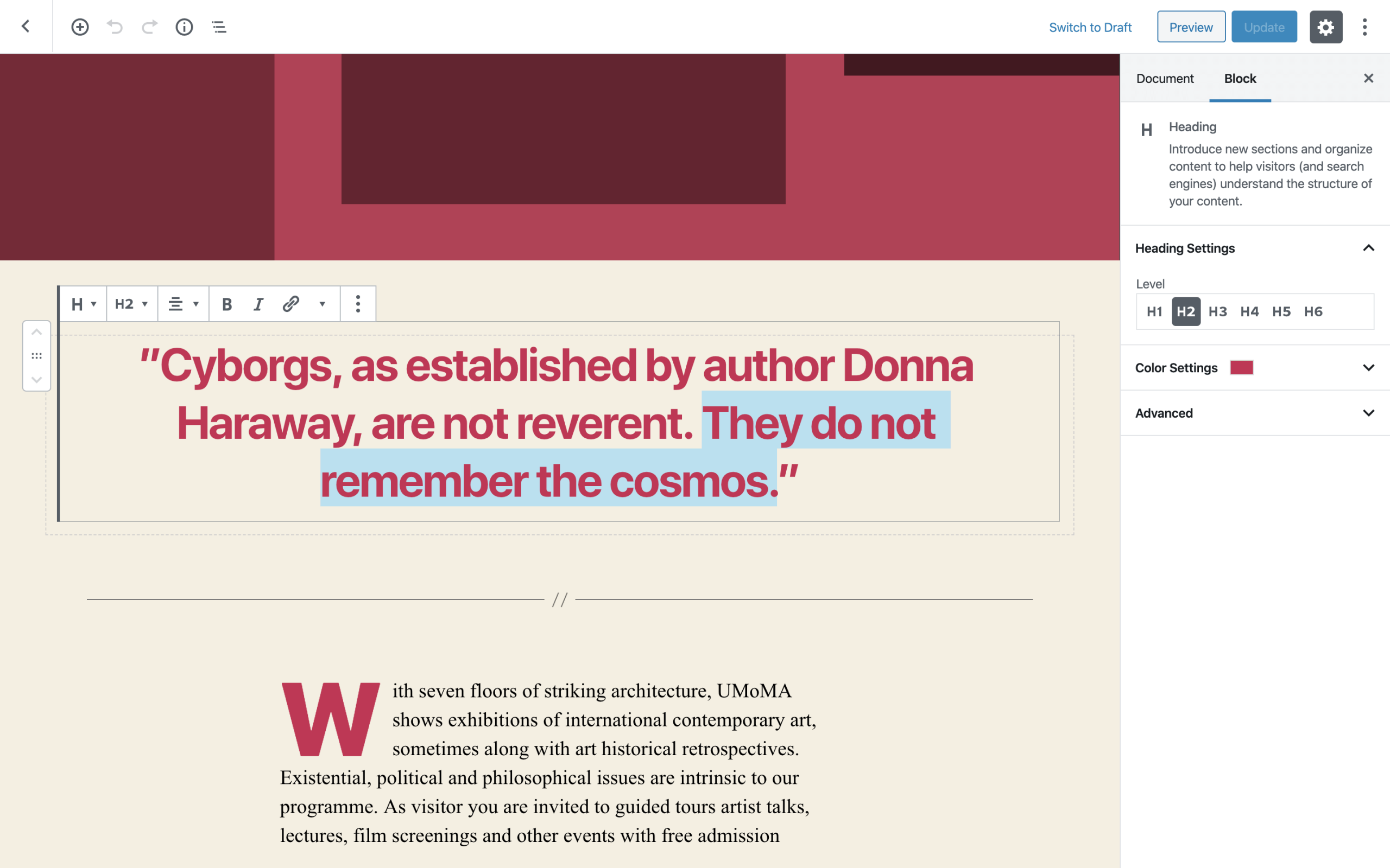 Twenty Twenty theme for 2020 is designed to take full advantage of the flexibility of the block editor. Organizations and businesses have the ability to create dynamic landing pages with endless layouts using the group and column blocks.